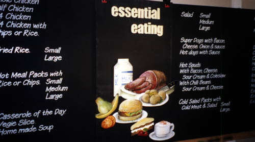Essential Eating Cafe Award wining café & take away specialising in homemade fare. 2 large boards and a series of smaller counter boards using chalkboard vinyl. |